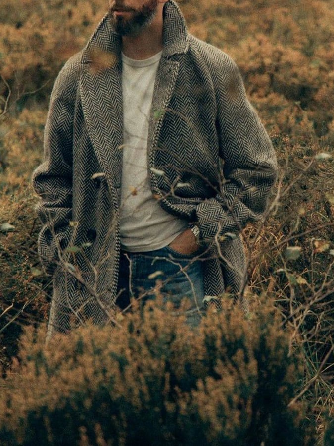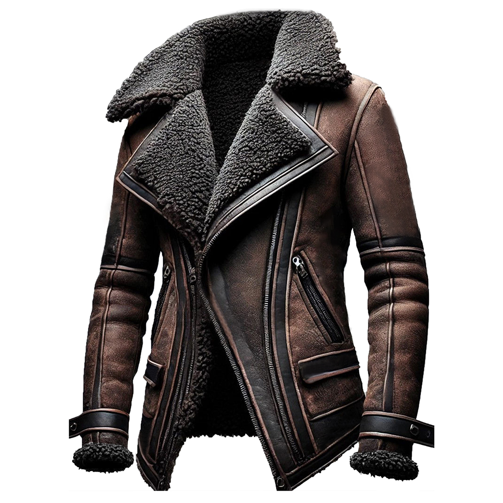 Men's Vintage Suede Color Block Shearling Fleece Fur Reverse Collar Mid-Length Layer Coat Jacket$110.00 USD$263.00 USD