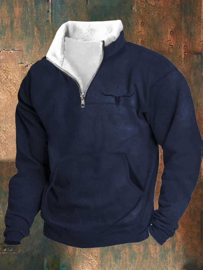 Casual Zipper Stand Collar Long Sleeve Printed Sweatshirt