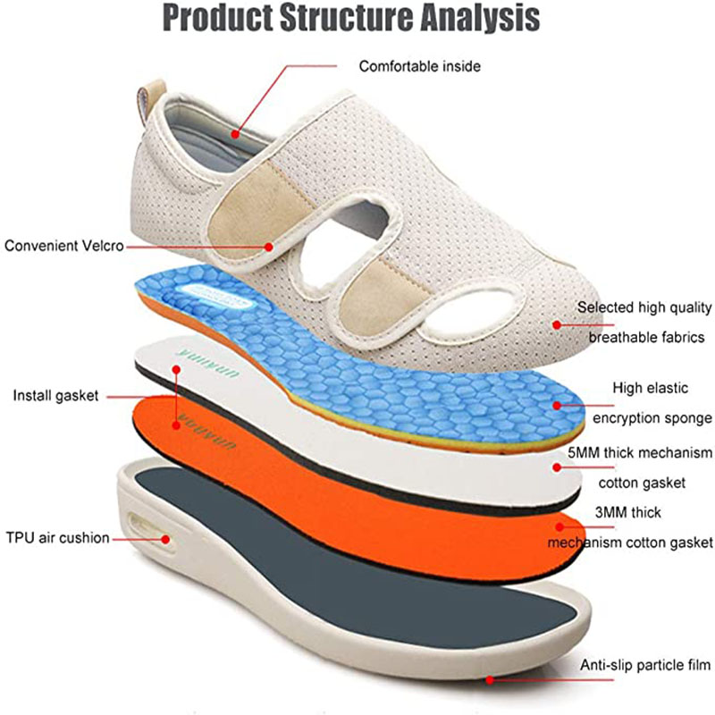 Forefoot straps are highly adjustable thanks to velcro closures, the range of adjustment is ideal for changes in the degree of swelling. Wearing the lightweight diabetic shoe can help alleviate pressure on swollen feet, bunions, edema, diabetes or hammer toes.