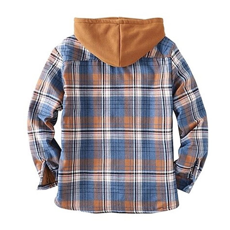 Hooded Casual Plaid Pocket Long Sleeve Jacket Shirt
