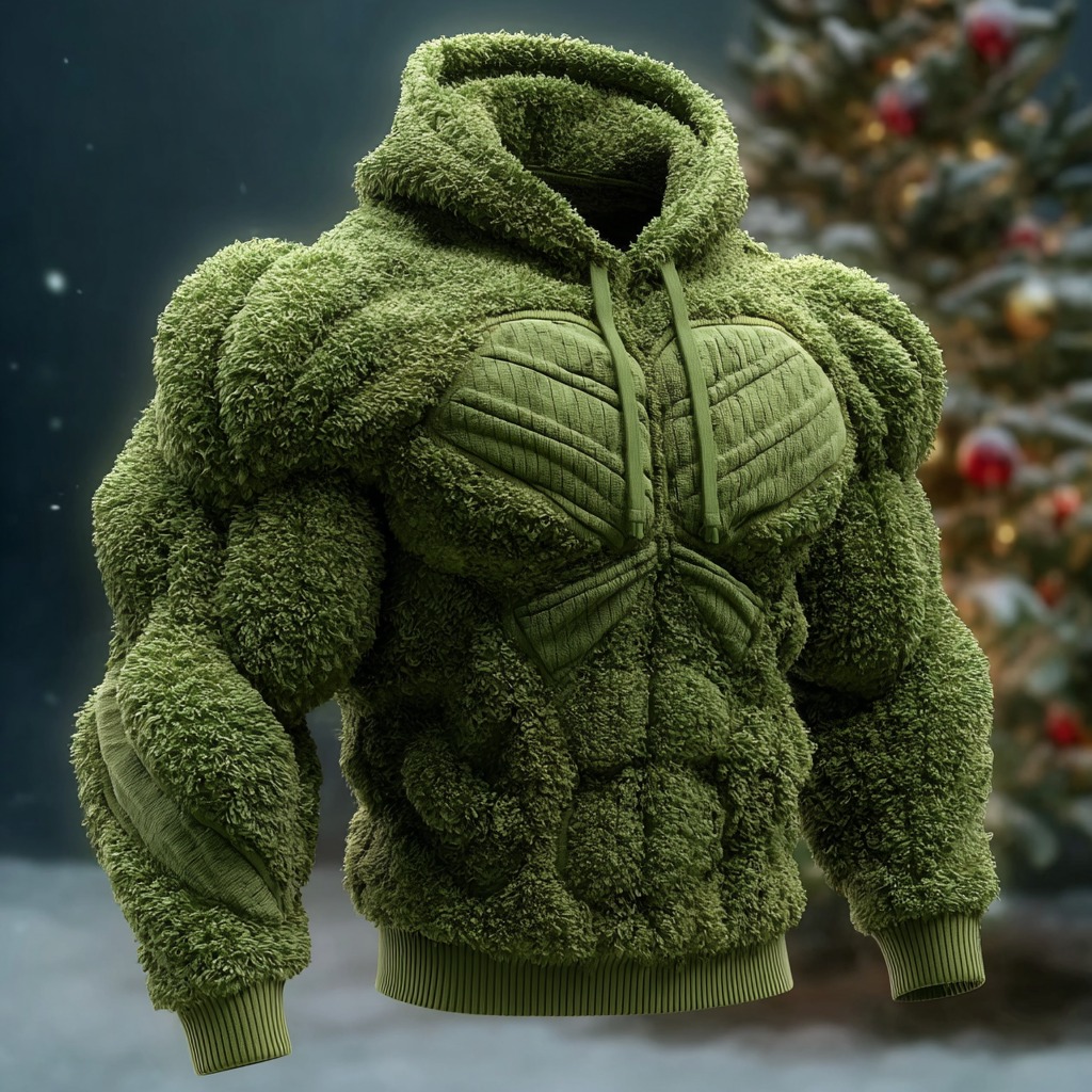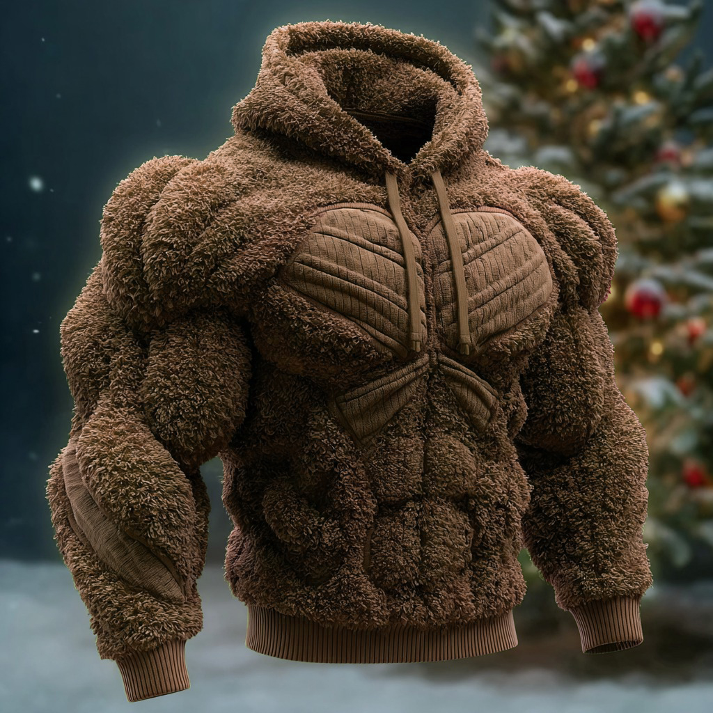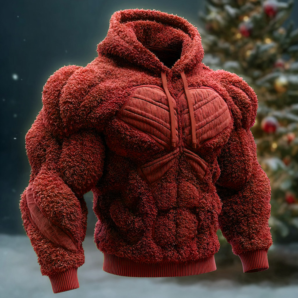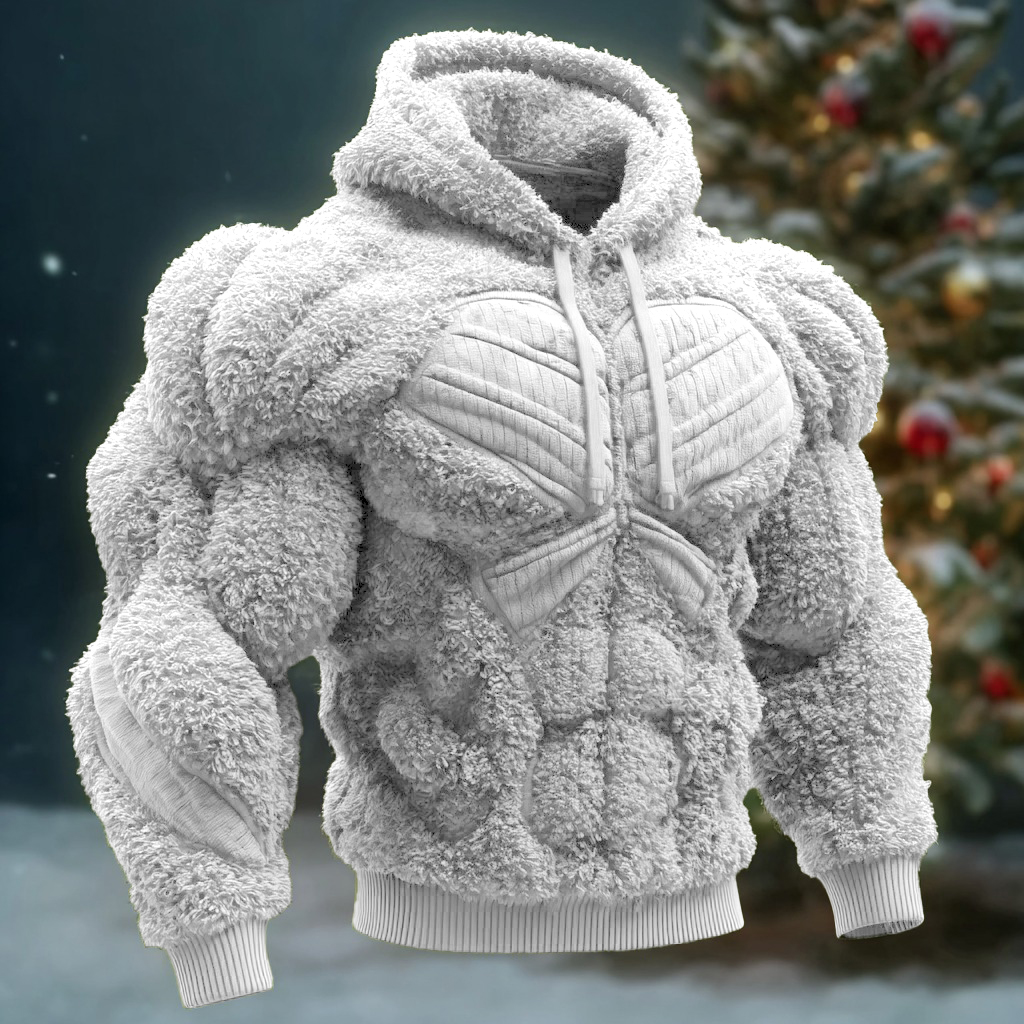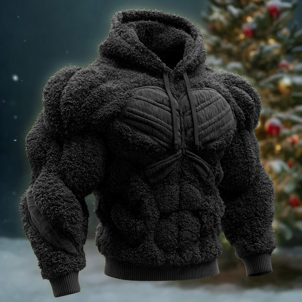 Line Art Flannel Warm Men's Hooded Sweatshirt