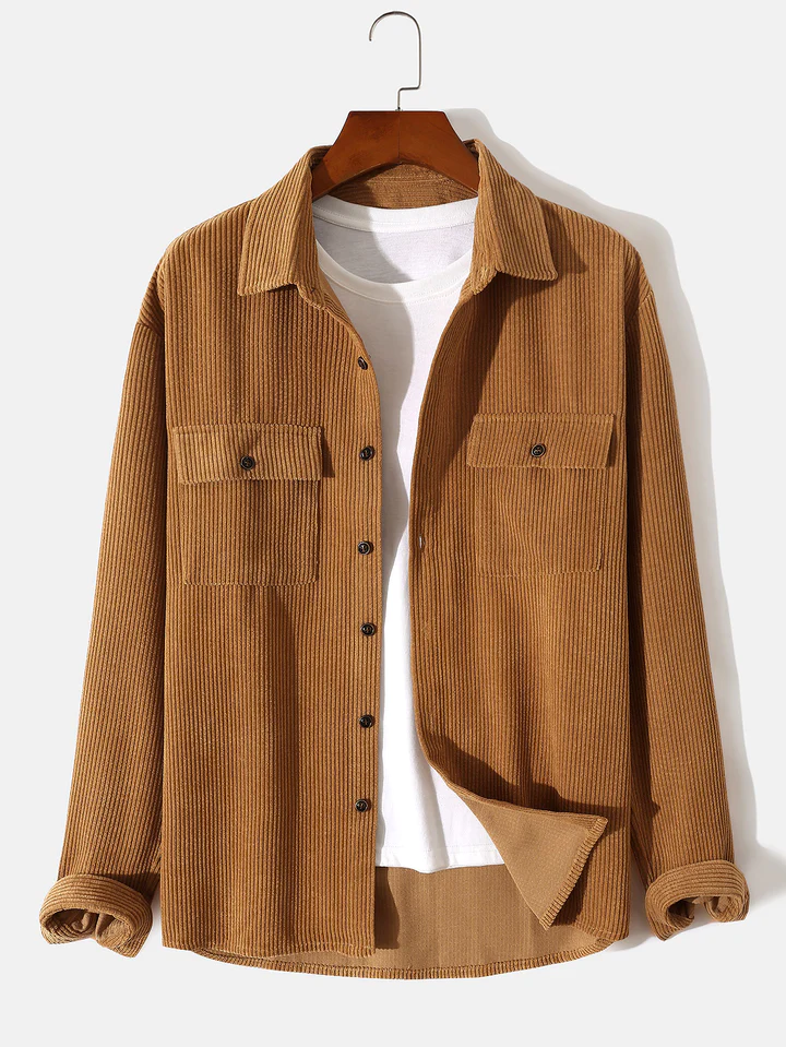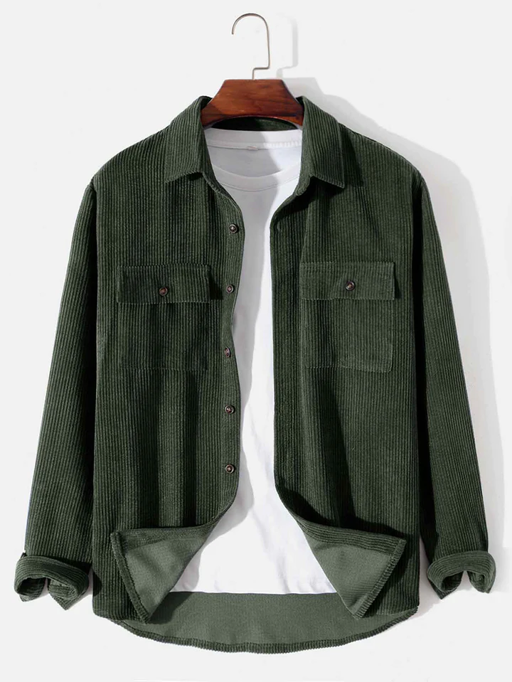 Long Sleeved Corduroy Button Up Shirt With Pockets