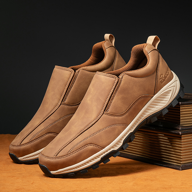 MEN'S COMFORTABLE GENUINE LEATHER SLIP-ON SNEAKERS WITH ARCH SUPPORT AND SHOCK ABSORPTION