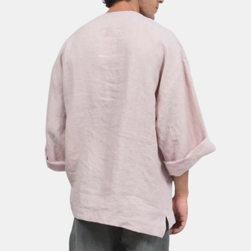 Men's Linen Ethnic Style Loose Flared Long-Sleeved T-Shirt