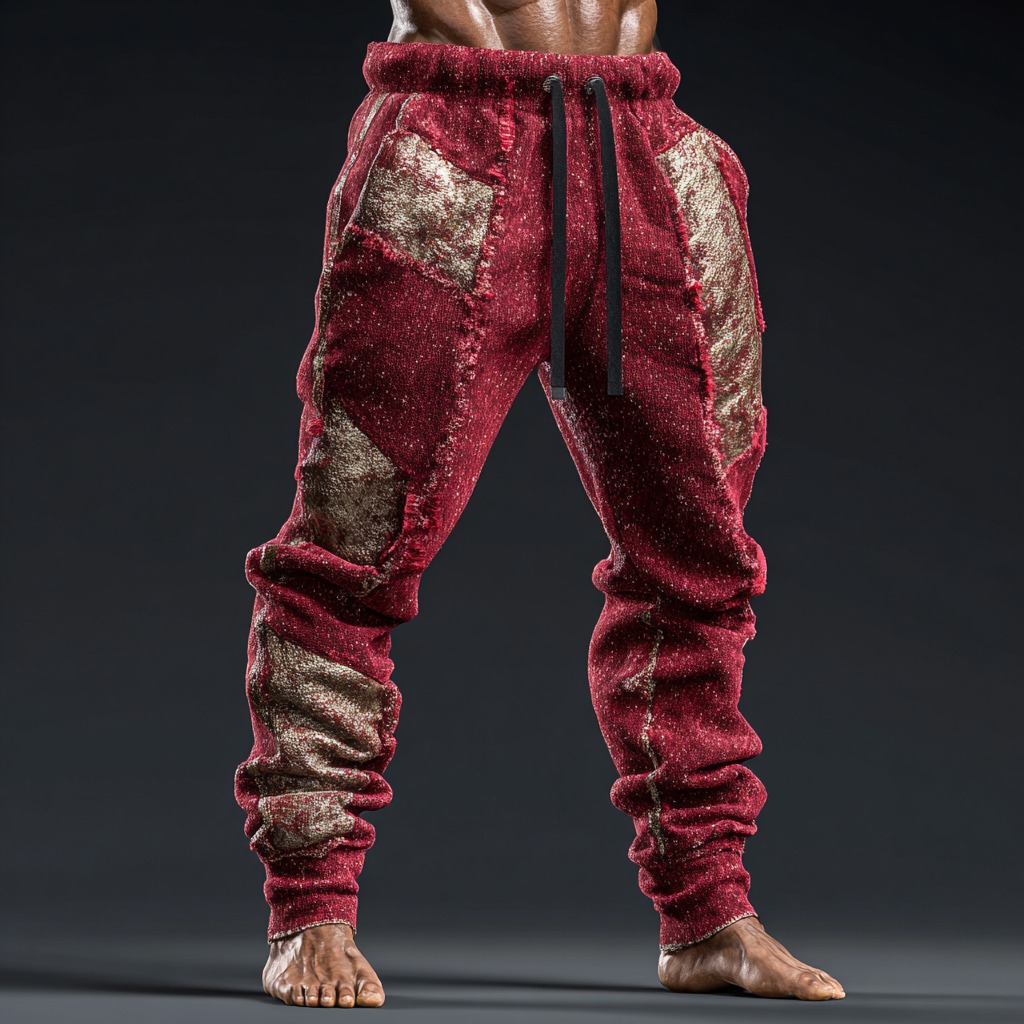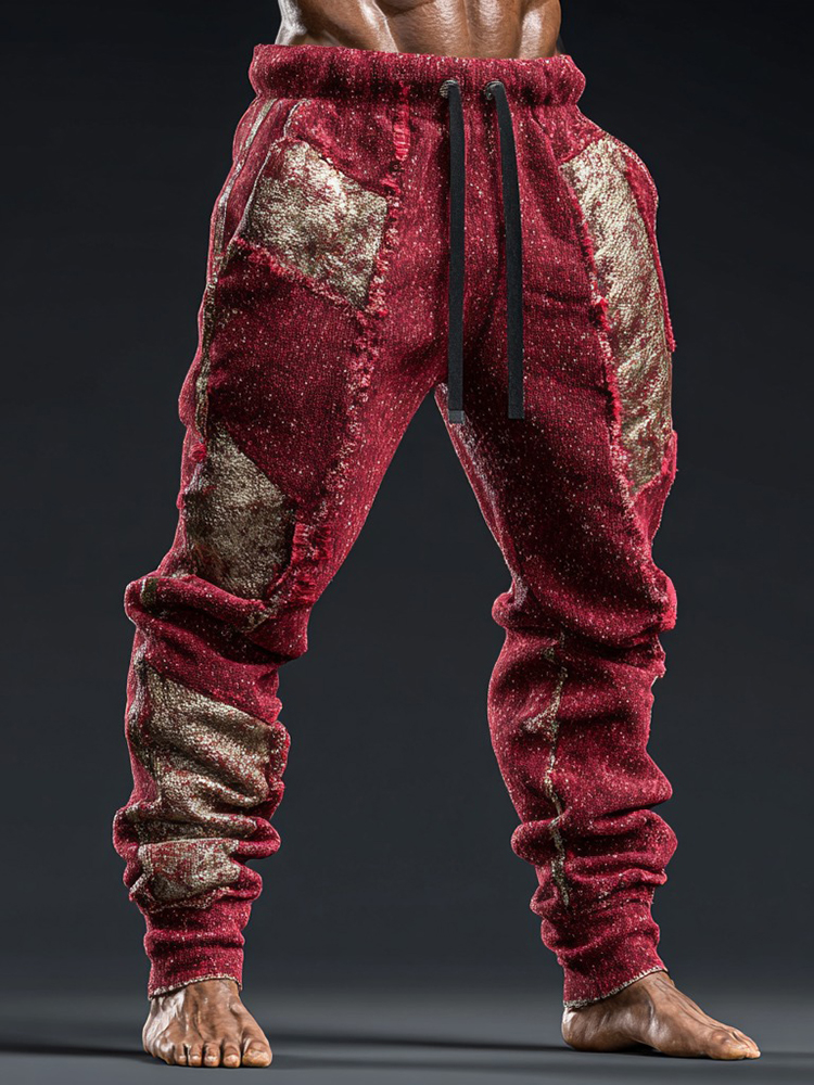 Men's Christmas Metallic Line Art Knitted Plush Pants