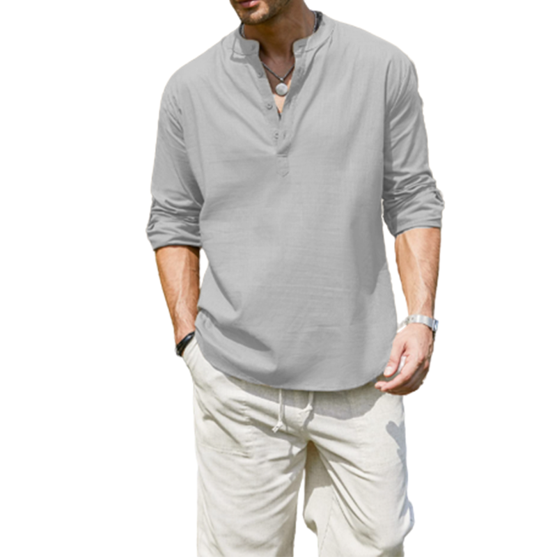 Men's Cotton Linen Casual Long Sleeve Shirt