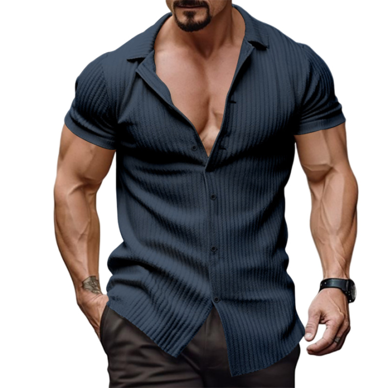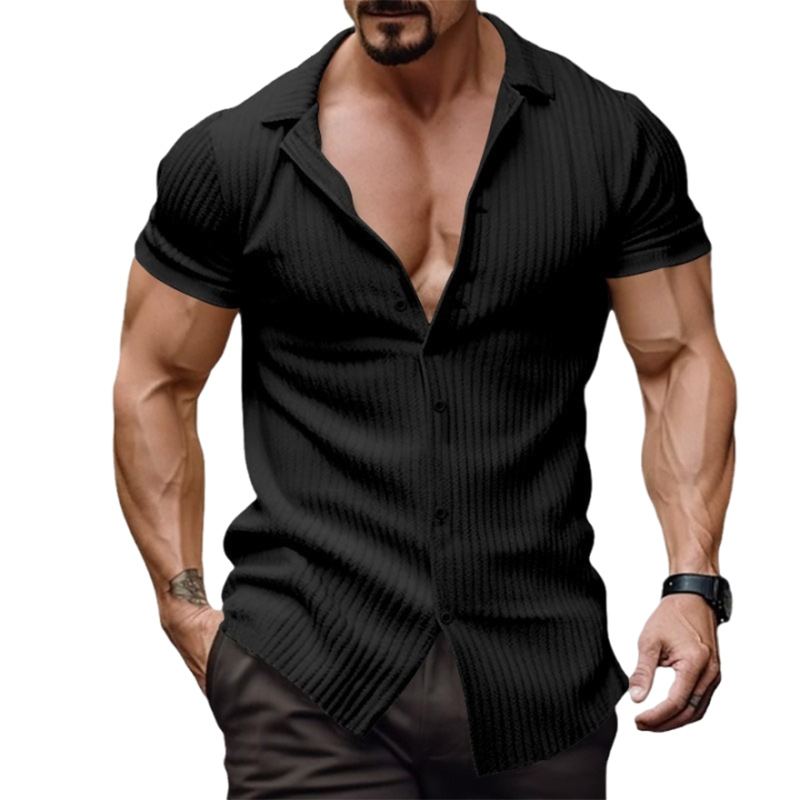 Men's Fashion Casual Vertical Stripe Short Sleeve Lapel Top