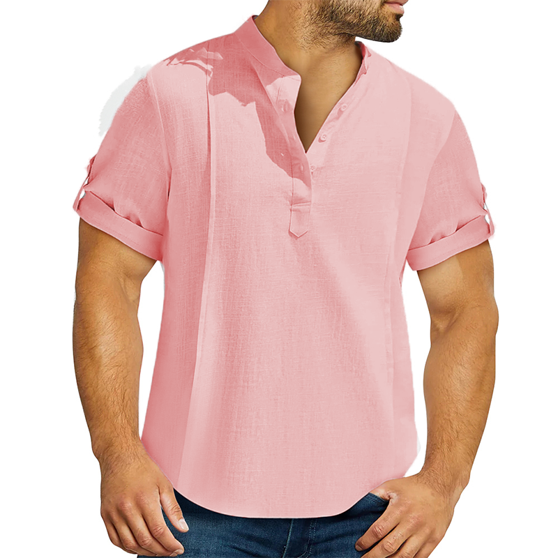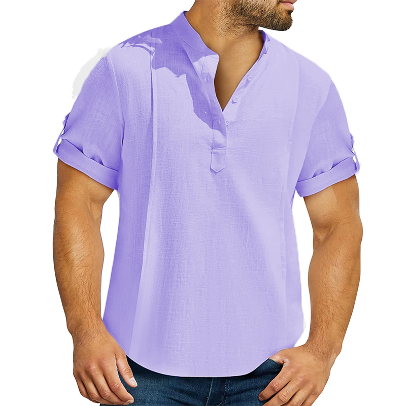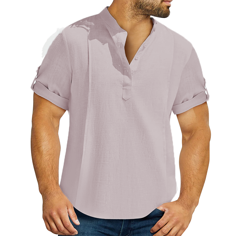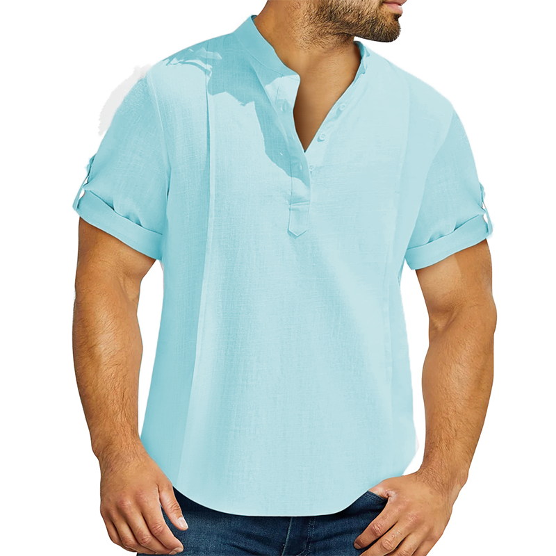 Men's linen cotton Henley shirt casual shirt short sleeve T shirt