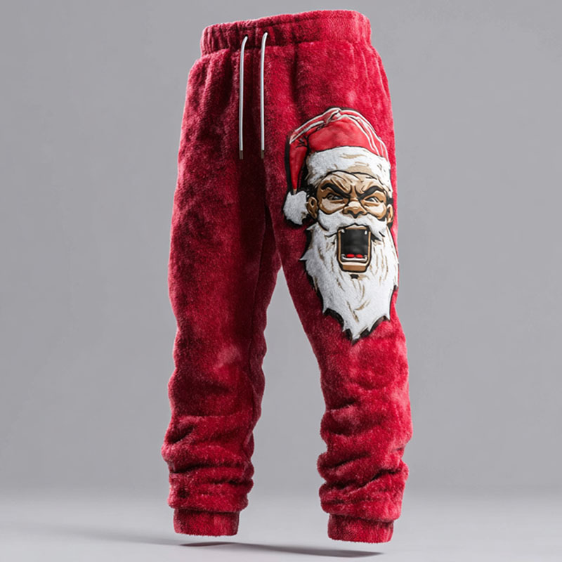 Men's Quirky Angry Santa Claus Flannel Sweatpants