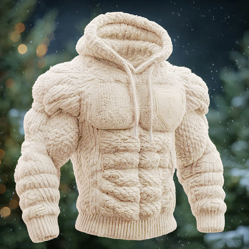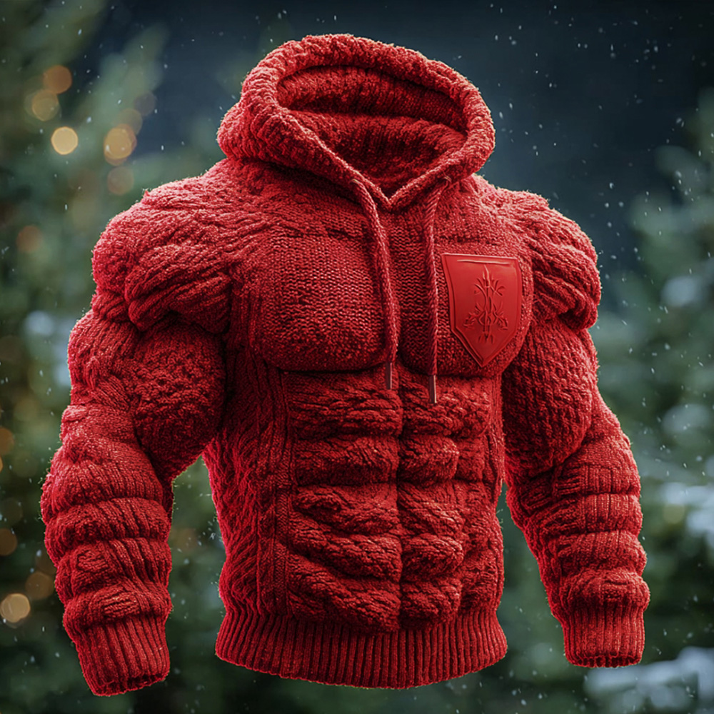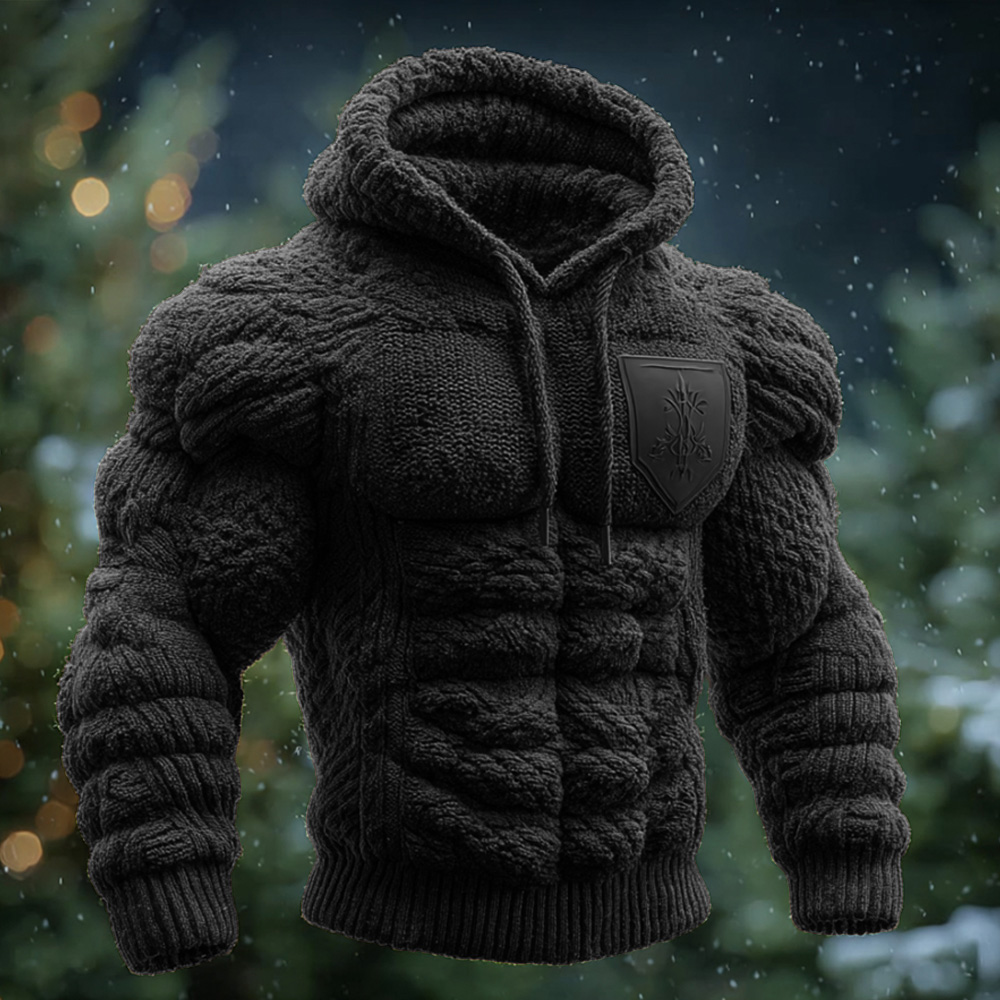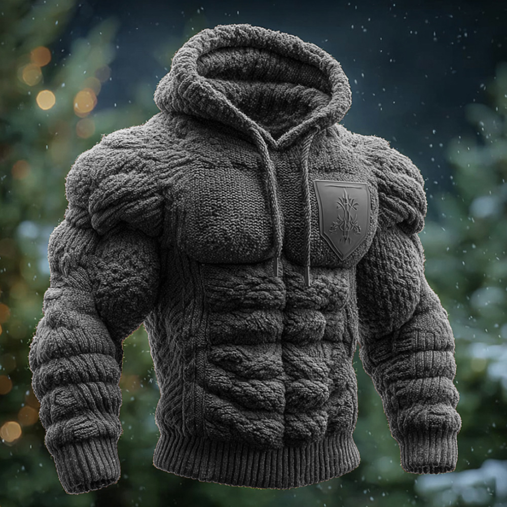 Men's Retro Muscle Line Thick Knitted Hooded Sweater