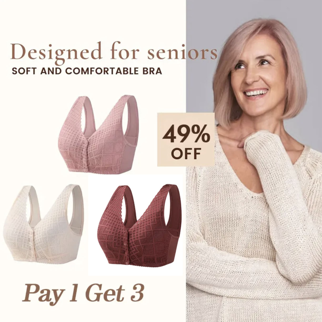 🔥Buy 1 Get 3(3packs)🔥 Women's Cotton Front Button Bra--70% OFF