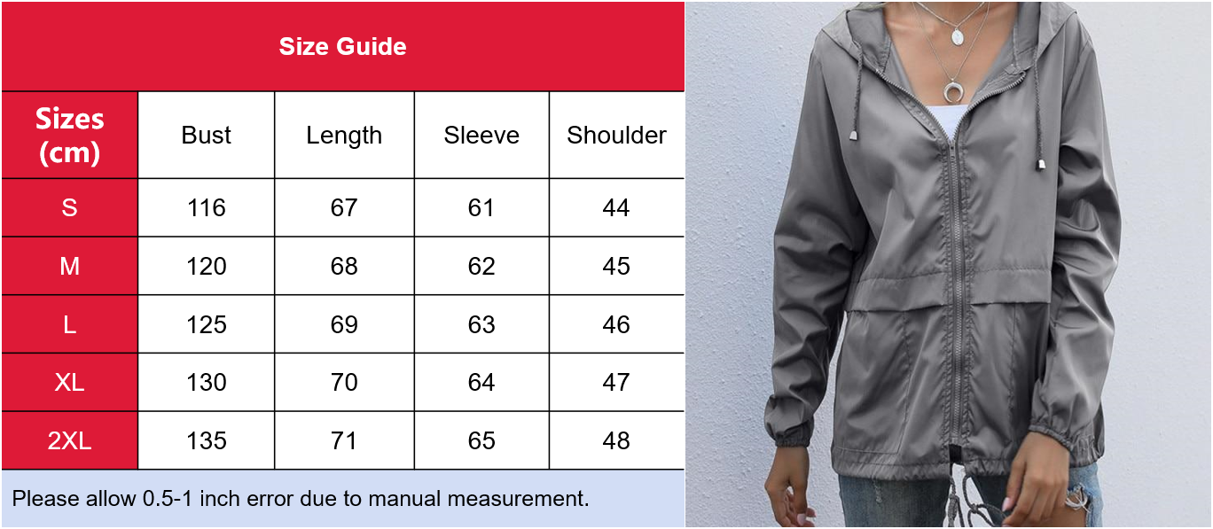 Women's Light Weight Waterproof Raincoat Zipper Jacket
