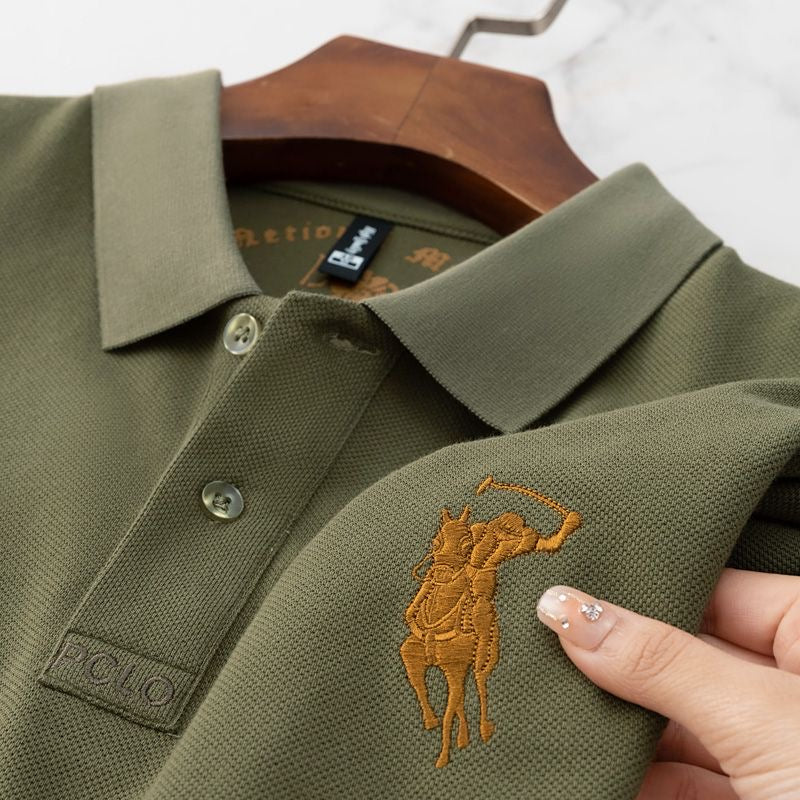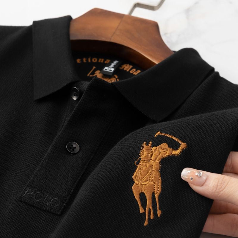 • Neck: Polo collar with contrast detailing