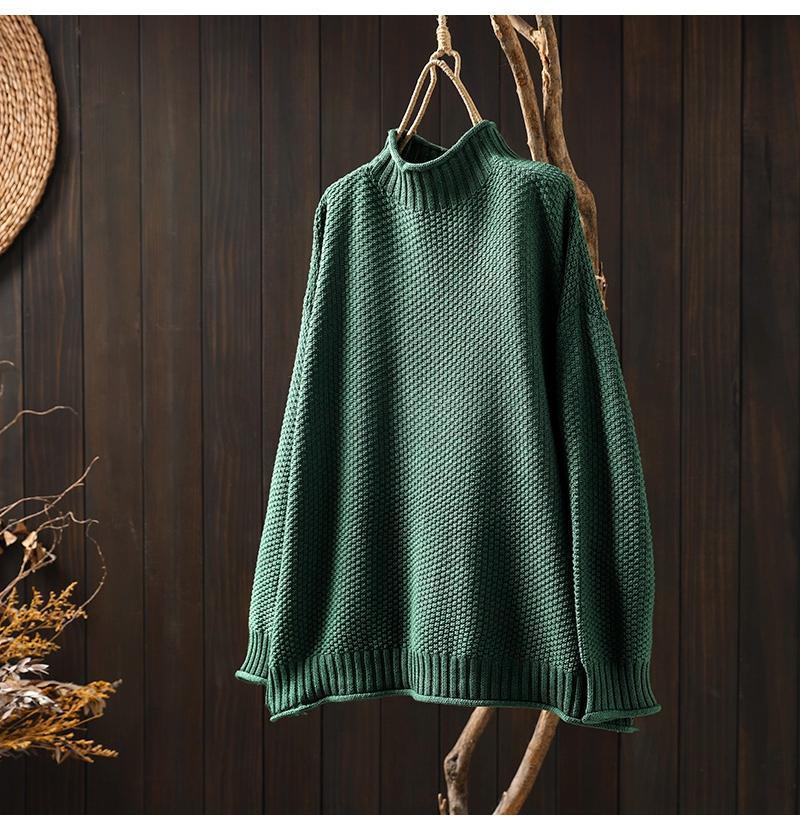 Are you looking for a pop of color in your wardrobe? This grass green turtleneck sweater with long sleeves is like a breath of fresh air on a dreary day. Made from a high quality acrylic/polyester blend, it offers comfort and durability in one.