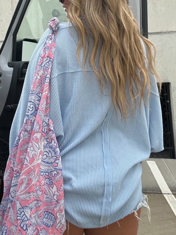 VALLEY GAL ribbed knit long sleeve. Opens up as a layering piece for versatility and ease! Can be paired with any shorts or pants!