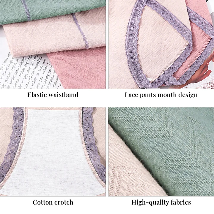 🔥Pay 1 Get 4🔥High Waist Plus Size Leak Proof Cotton Lace Panties (M-8XL)