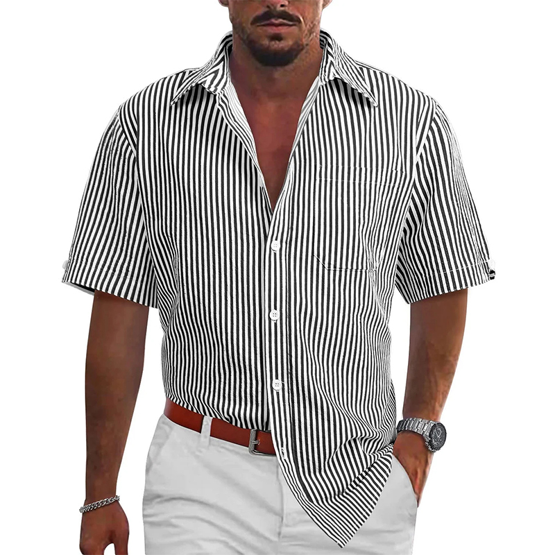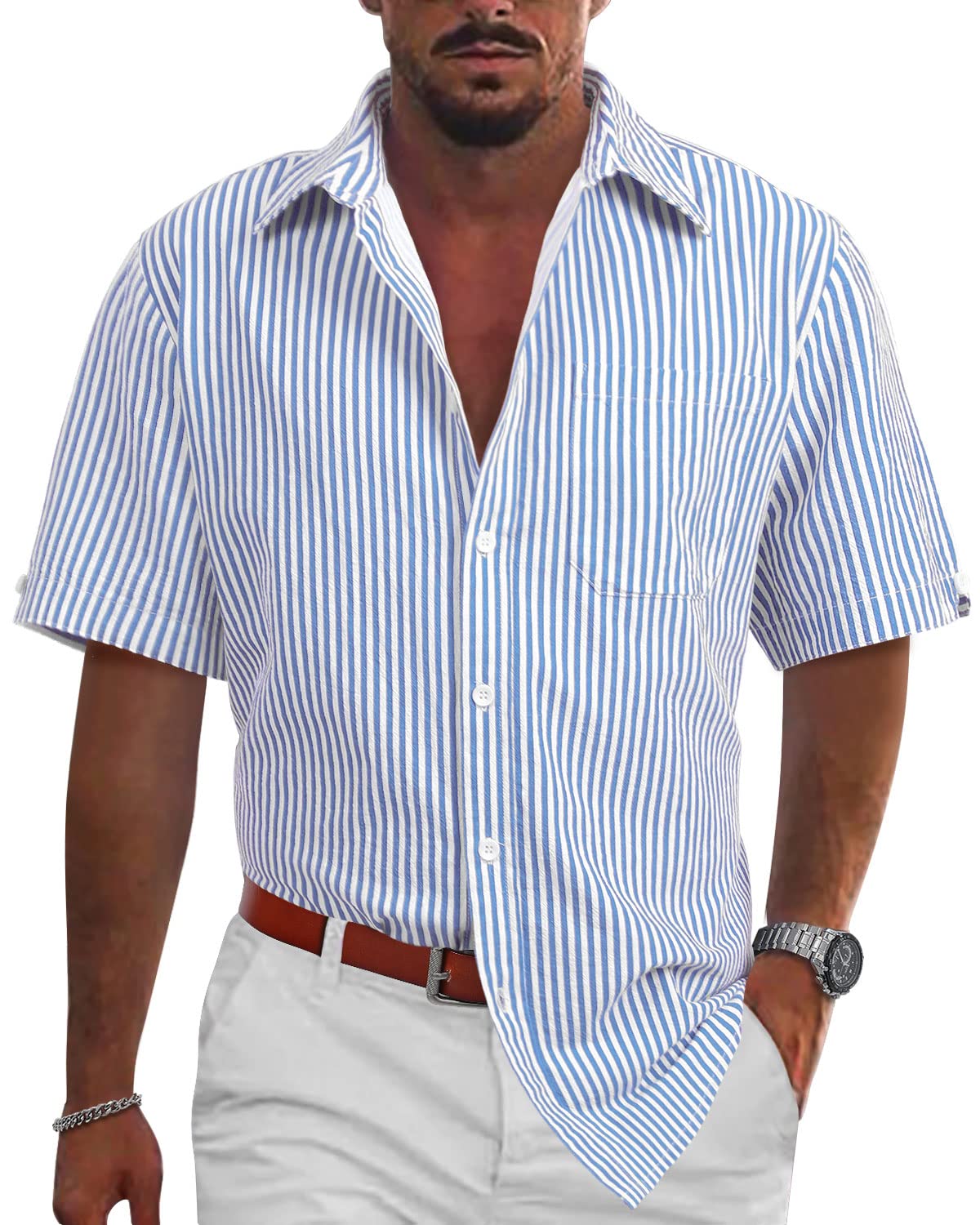 Mens Casual Lightweight Striped Short Sleeve Shirt Button Down Cotton Dress Shirts$35.99 USD$49.99 USD