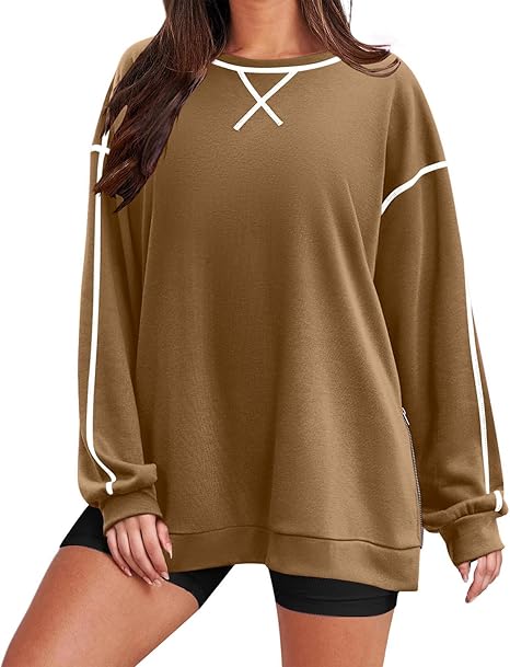 Women‘s Oversized Sweatshirt Crewneck Tunic Pollover Shirts Side Zipper Hoodie Sweater$30.00 USD$51.00 USD