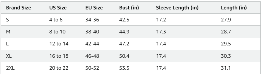 Size chart: