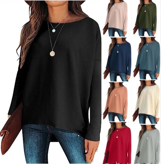 • Boat neck, bat wing long sleeves