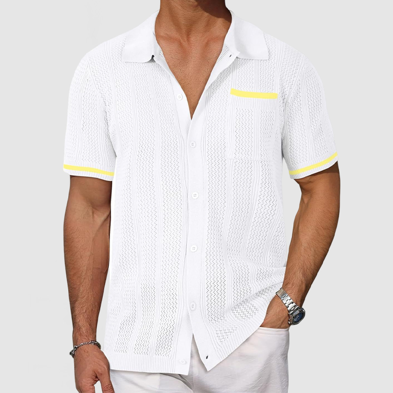 This shirt has a business-casual style element and is made from cotton, which is extremely breathable.This shirt is crafted from a breathable openwork knit fabric that's soft and cool to the touch, making it perfect for summer. The patchwork color blocking is a highlight which will make you stand out from the crowd. Whether for outdoor sports, leisure activities or social gatherings, this shirt will keep you elegant and gentlemanly for a long time.
