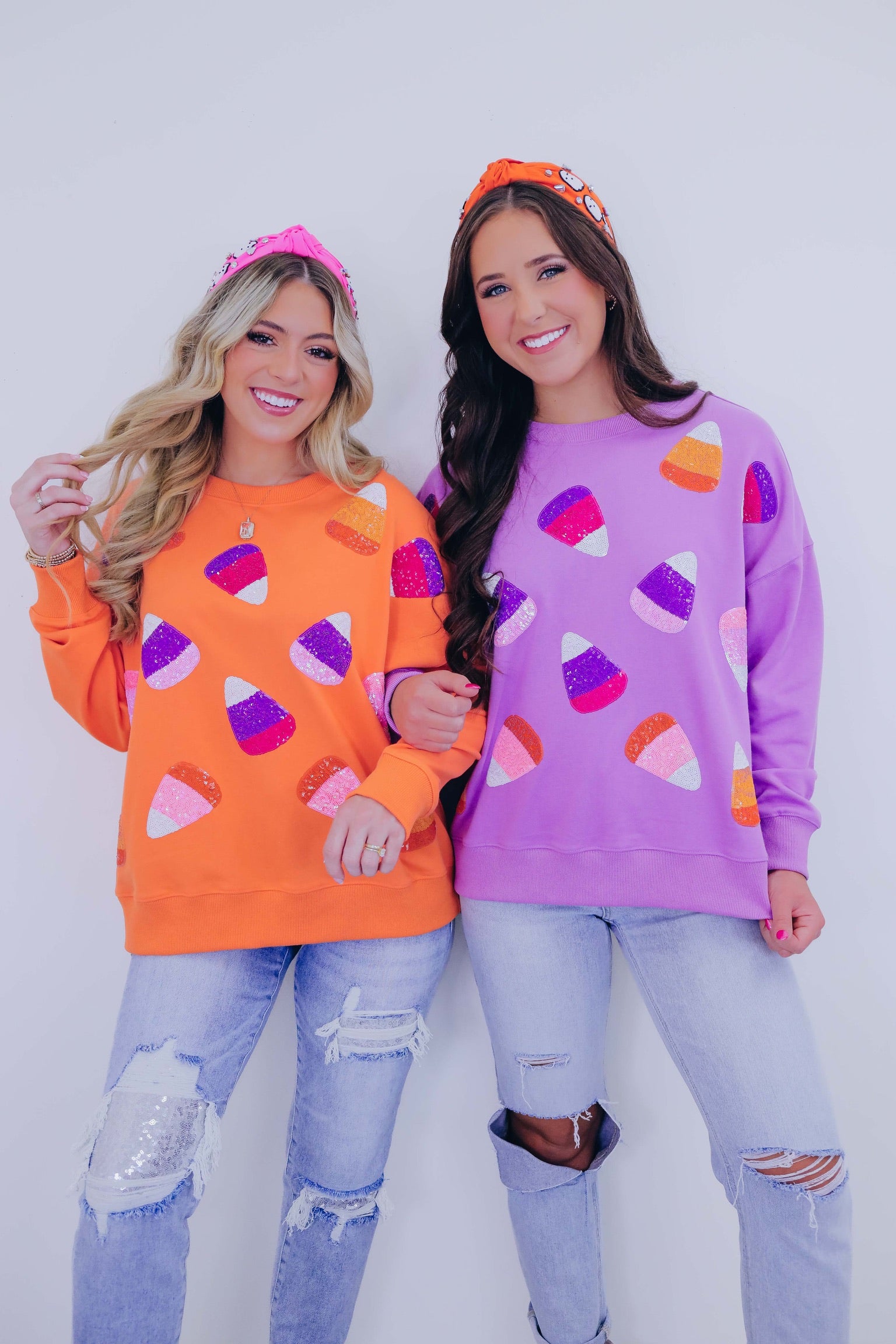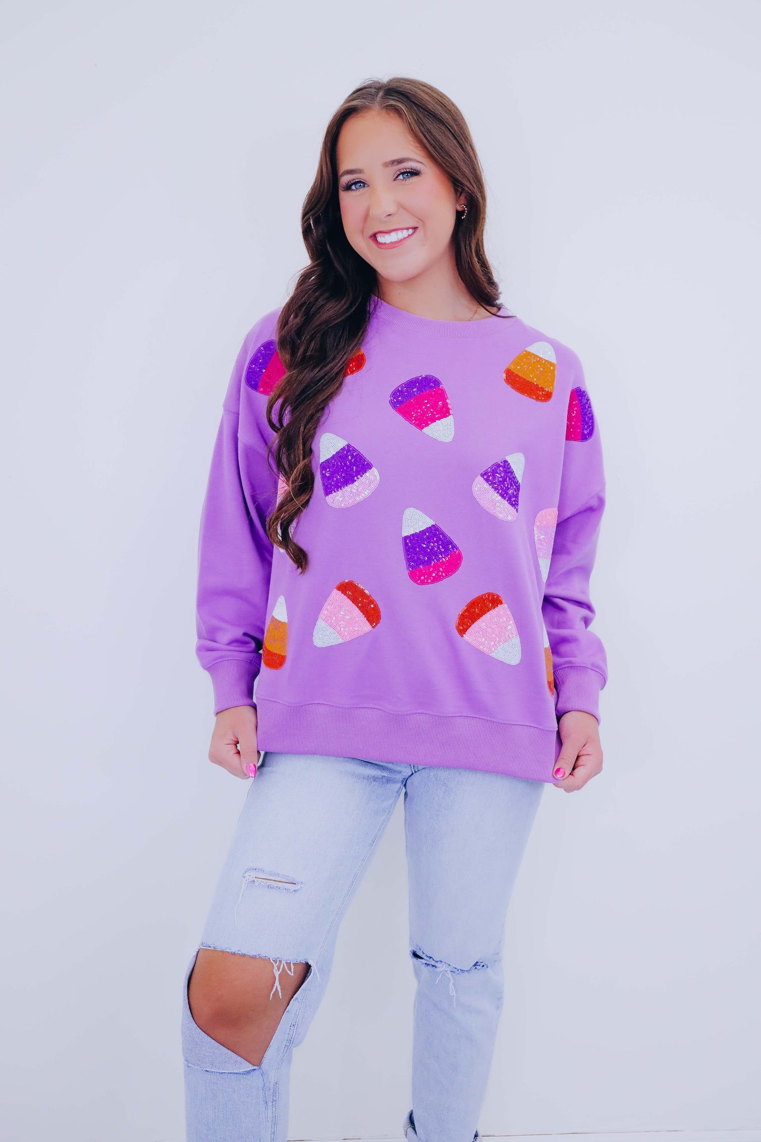 • We are so excited to offer you another WD exclusive design! Our Candy Corn Sequin Embellished Sweatshirt is so stinking cute, soft, and the perfect Halloween option for trick or treating or a casual family get together.