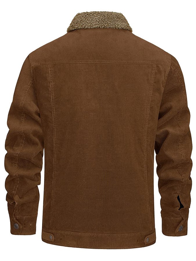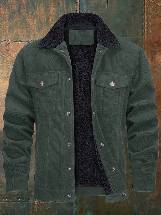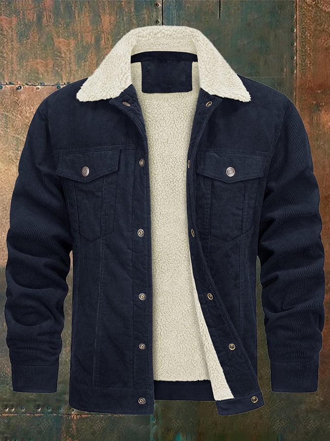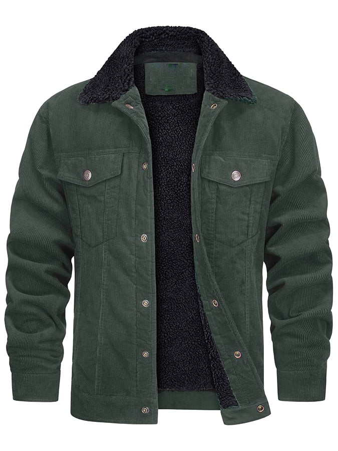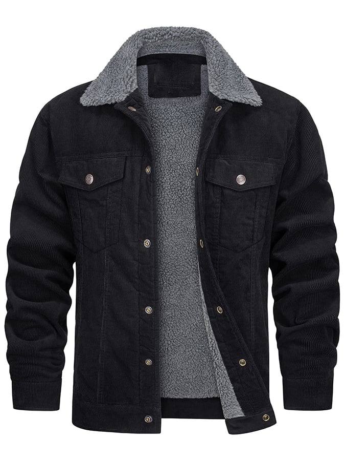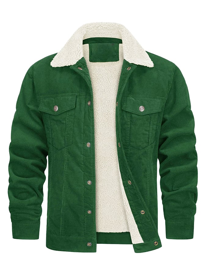 Men's Casual Fleece Lined Lapel Corduroy Trucker Jacket