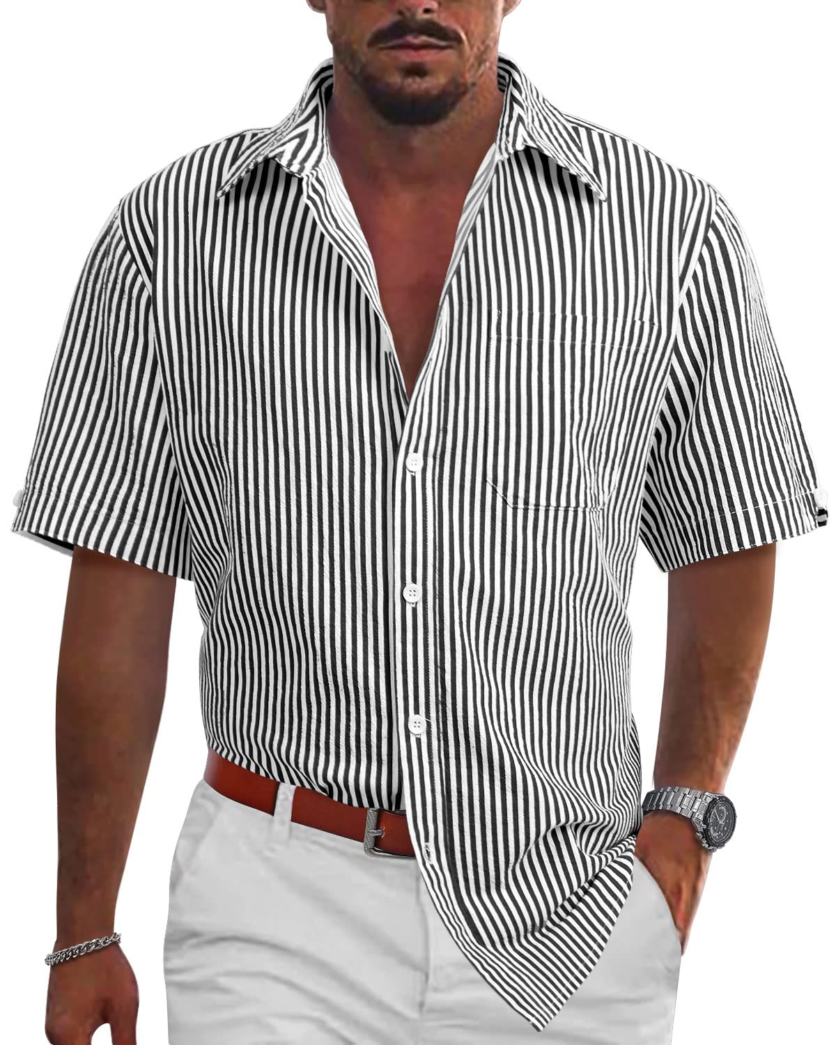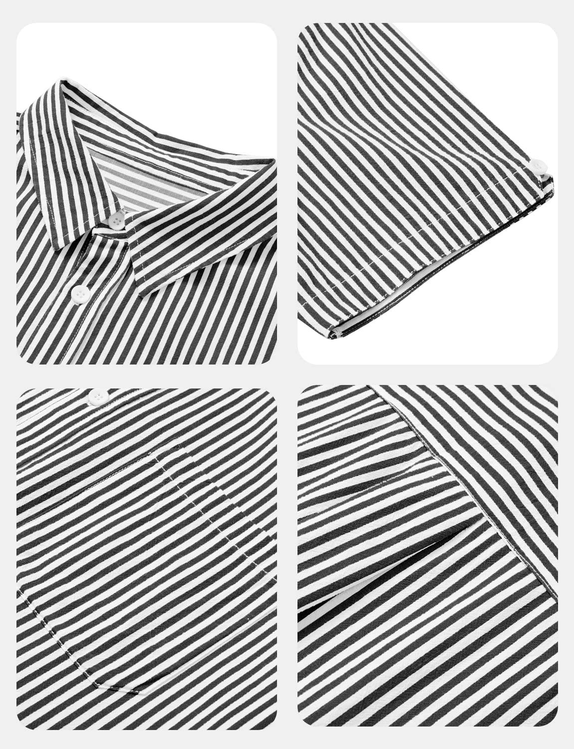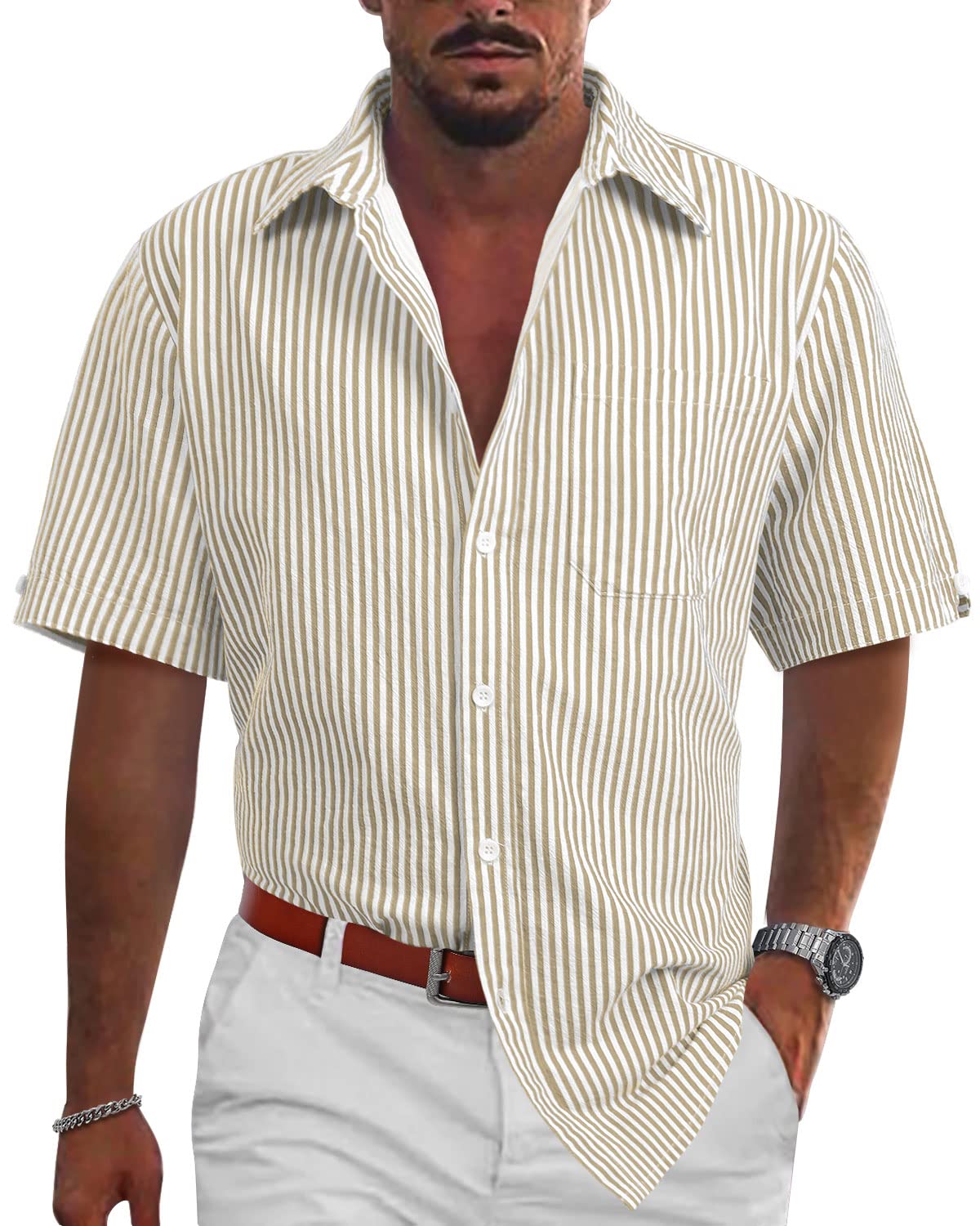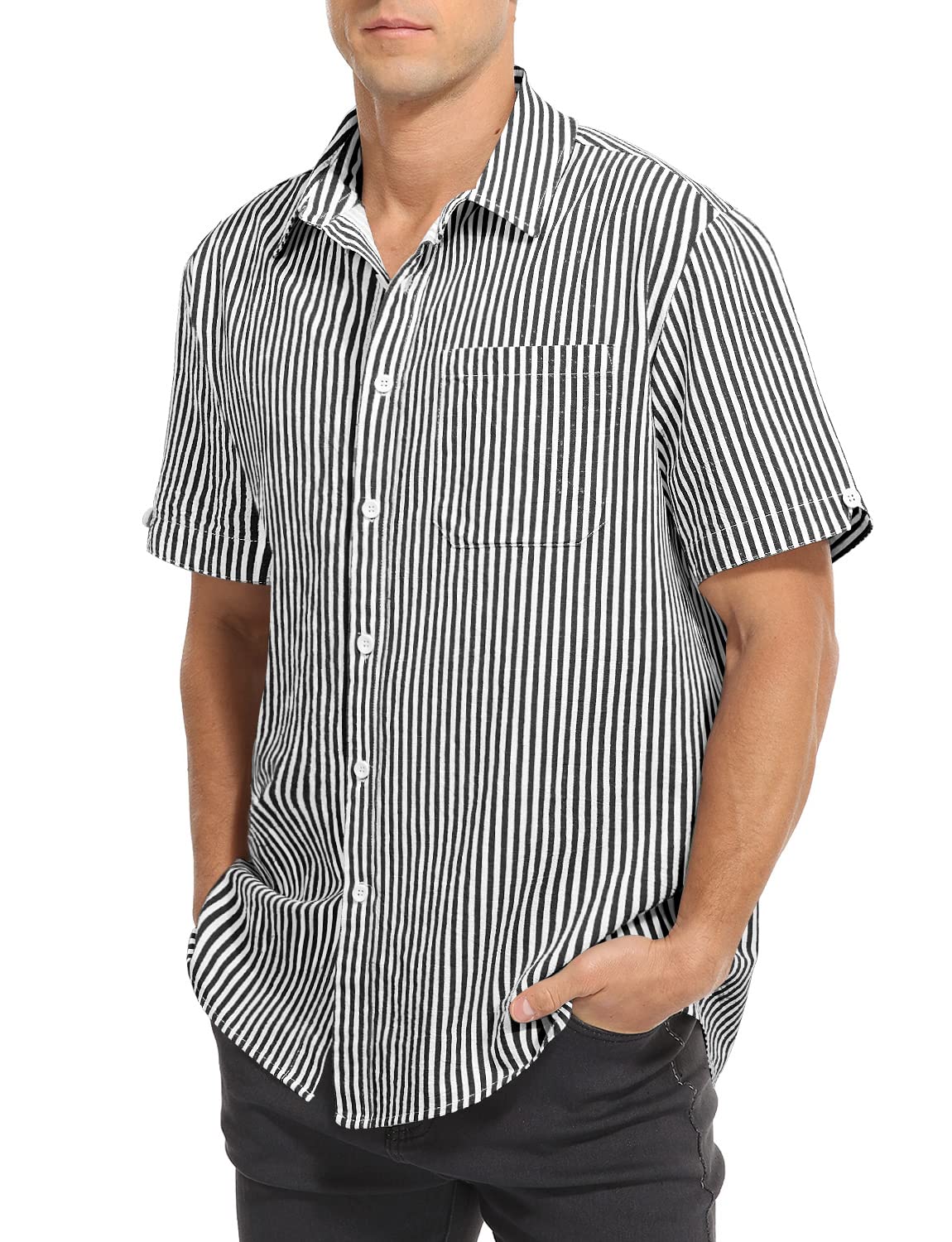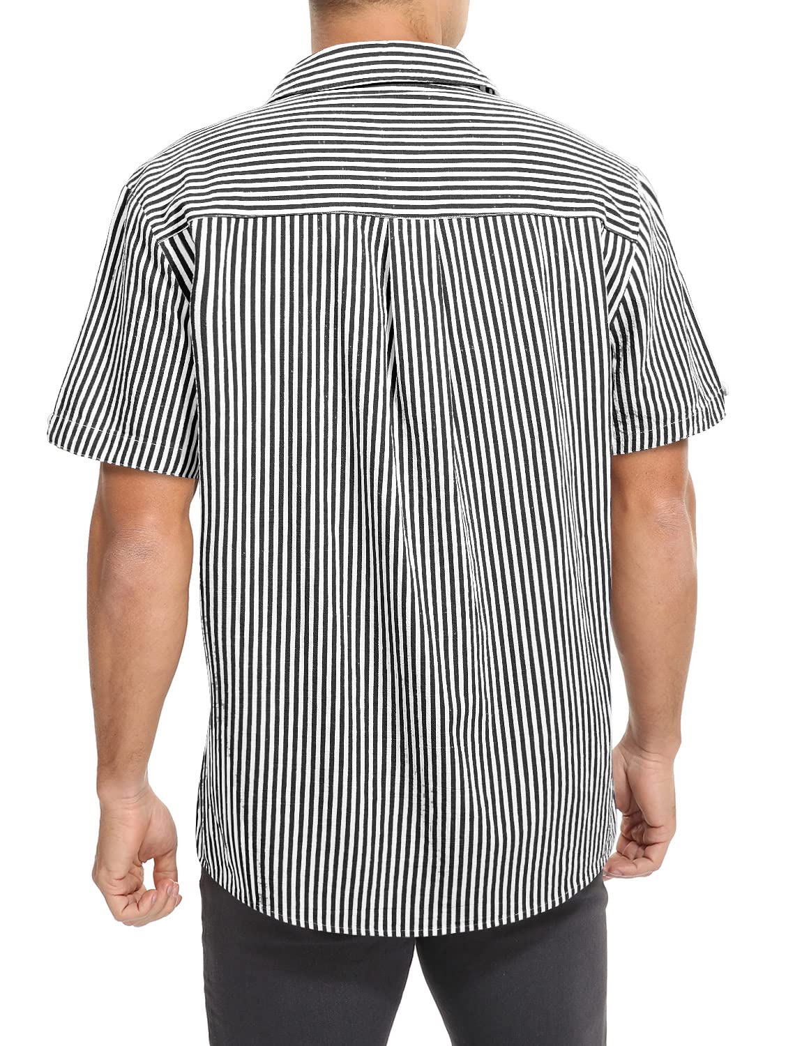 Mens Casual Lightweight Striped Short Sleeve Shirt Button Down Cotton Dress Shirts