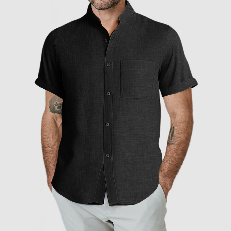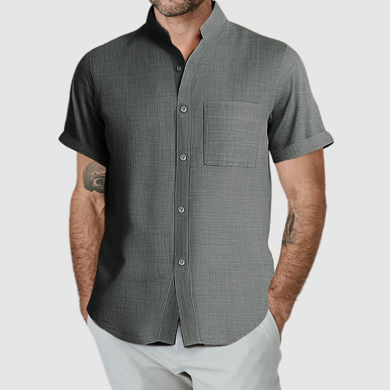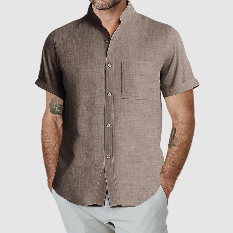 This shirt has a business-casual style element and is made from cotton And Linen, which is extremely breathable. This shirt is crafted from a natural cotton and linen fabric which is comfortable and breathable. The minimalist design of the shirt's collar and pockets is simple yet luxurious, and it will fulfill your daily needs. Whether for outdoor sports, leisure activities or social gatherings, this shirt will keep you elegant and gentlemanly for a long time.
