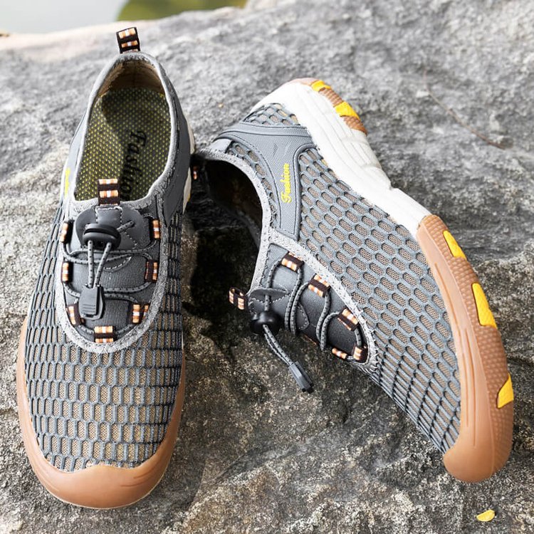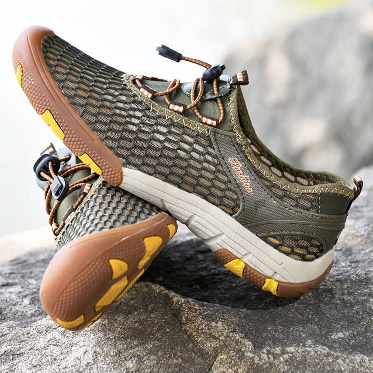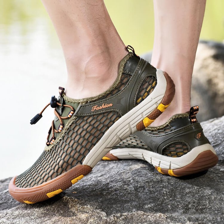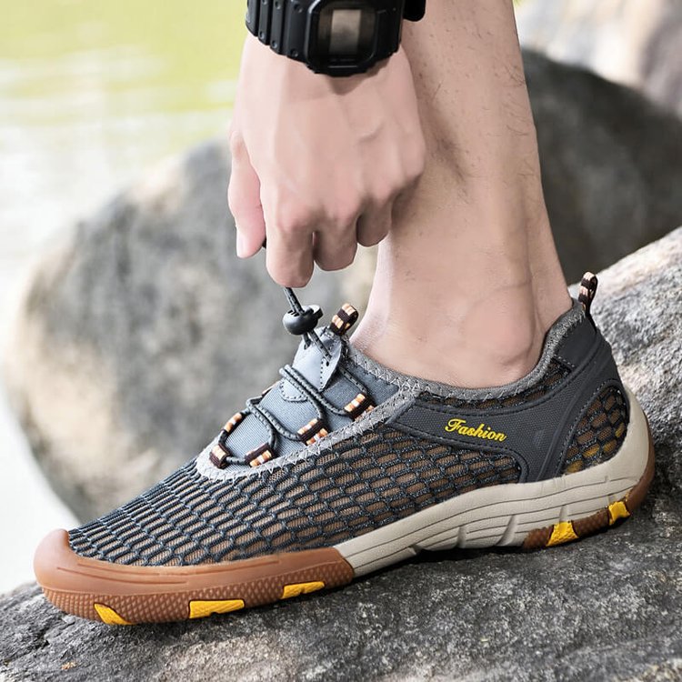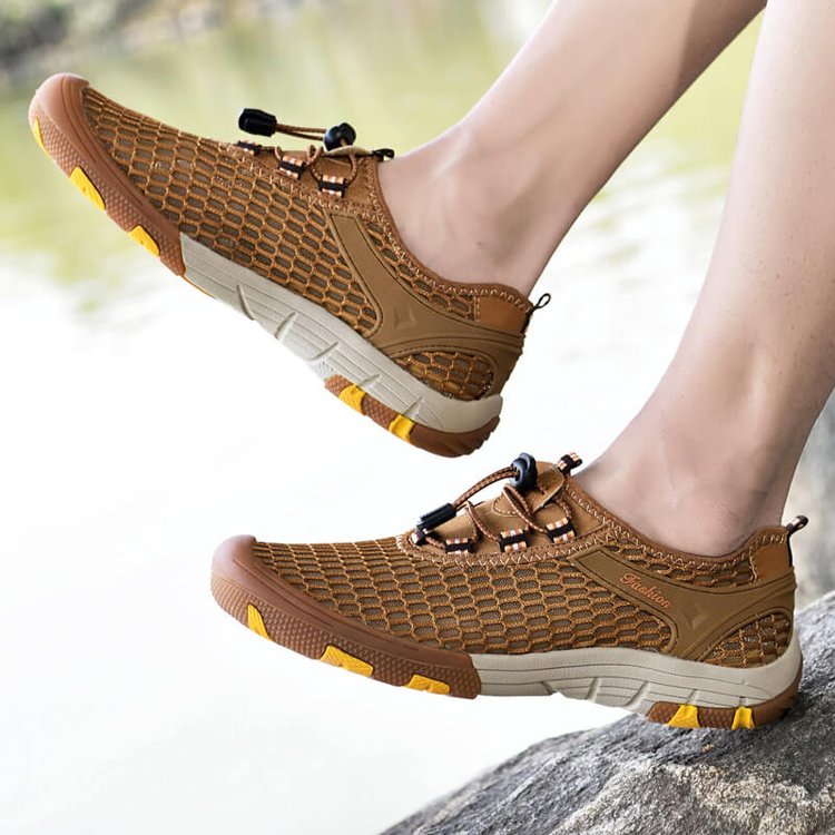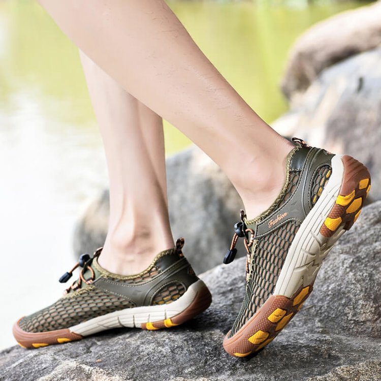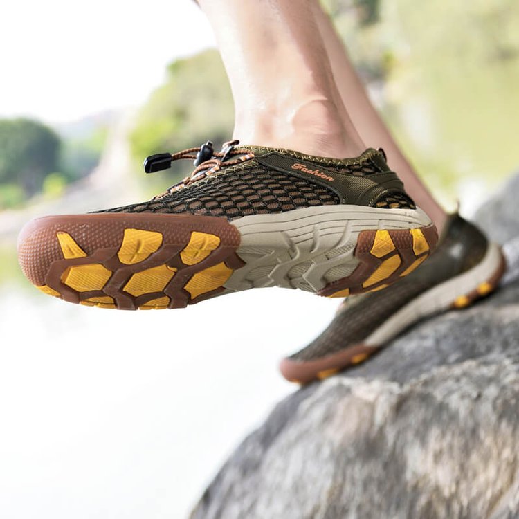 FOOT SAFETY AND COMFORTABLE: The rubber soles, with a really comfortable and thick foam arch-support insert inside of them, are flexible yet thick enough to protect your feet from stepping on rock and stone.