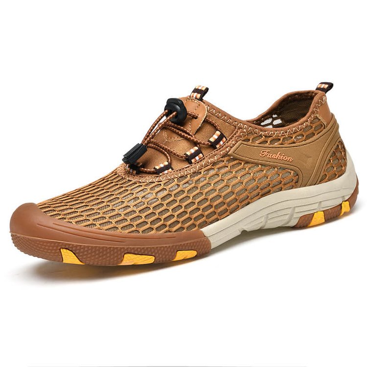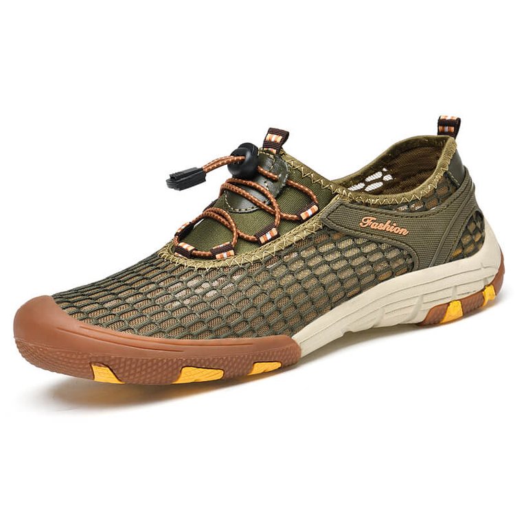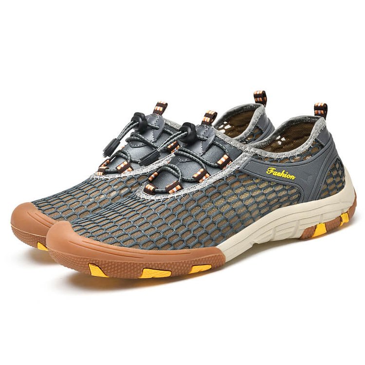 ANTI-SLIP OUTSOLE AND DURABLE :The anti-slip rubber sole, with an ergonomically molded, shock absorption performance cushioning separated protective toe guard.Excellent workmanship to prevent the seams around the toes fray and split within a short time.