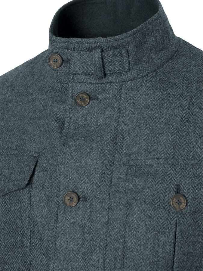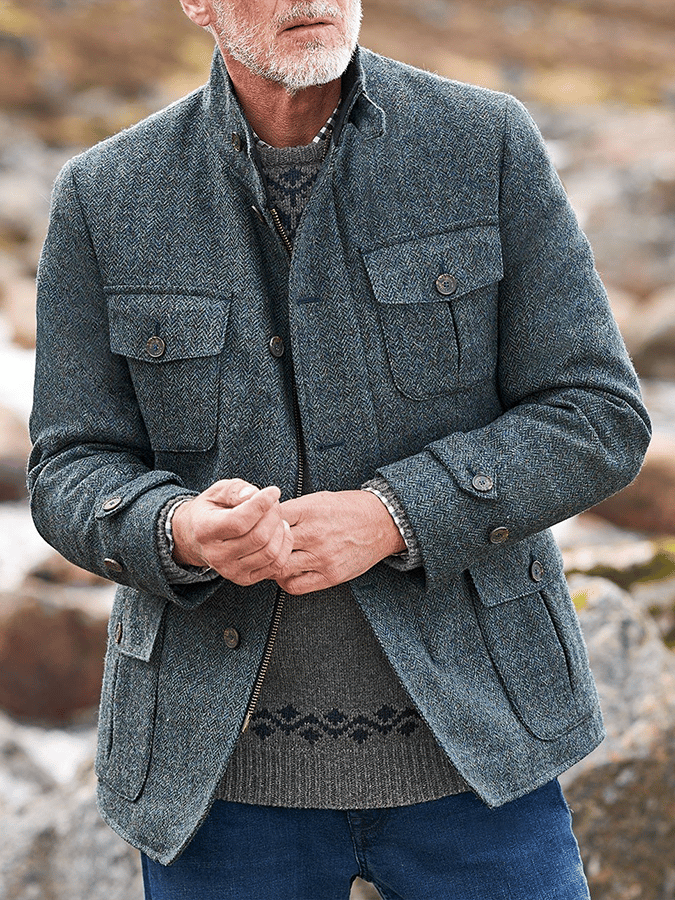 Men's Vintage Jacquard Herringbone Multi-Pocket Warm Jacket