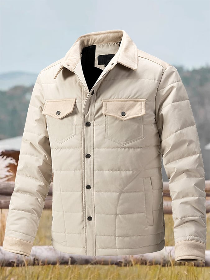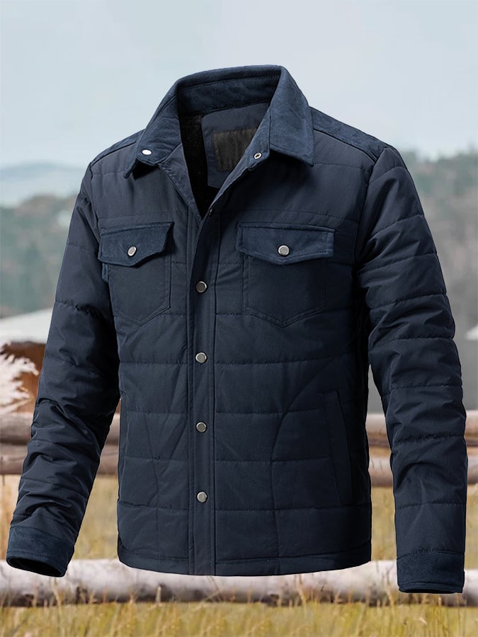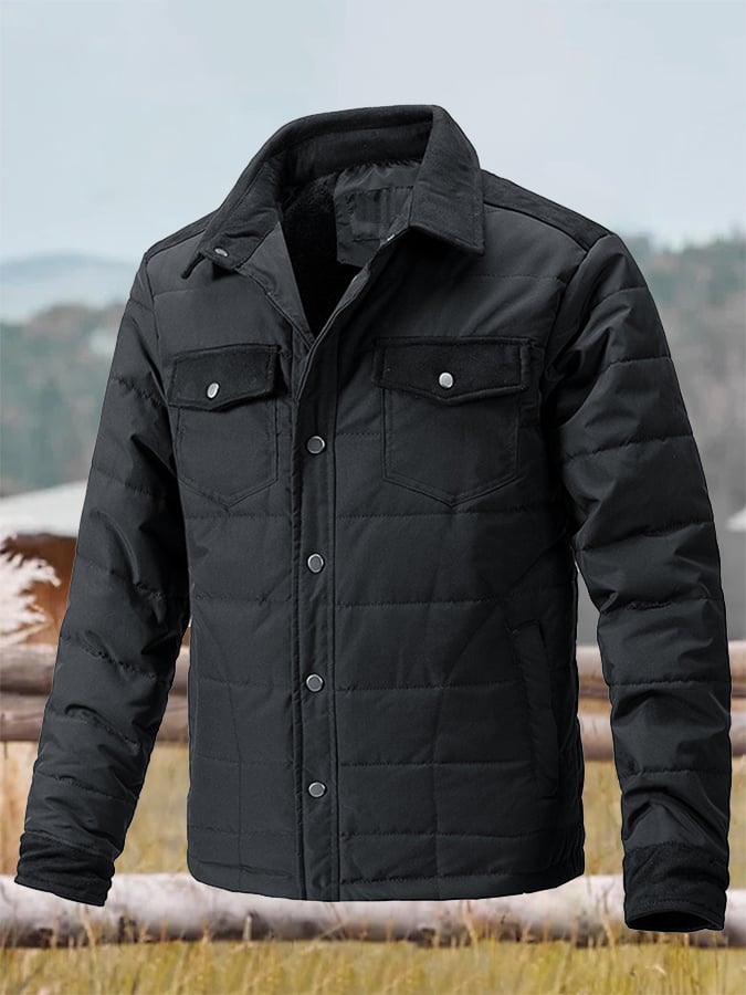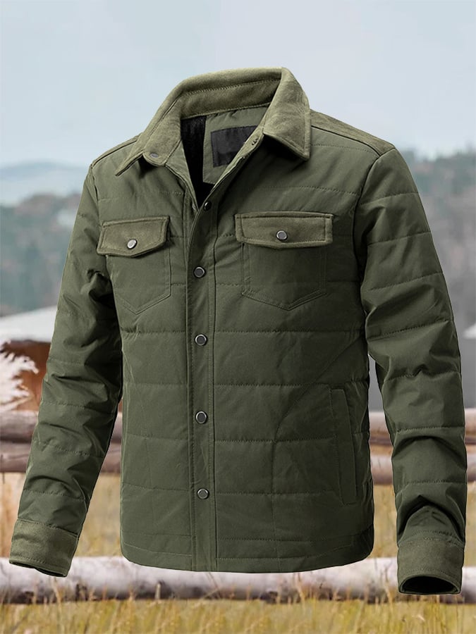 Men's Vintage Pleated Cotton Multi-Pocket Casual Plush Cotton Jacket