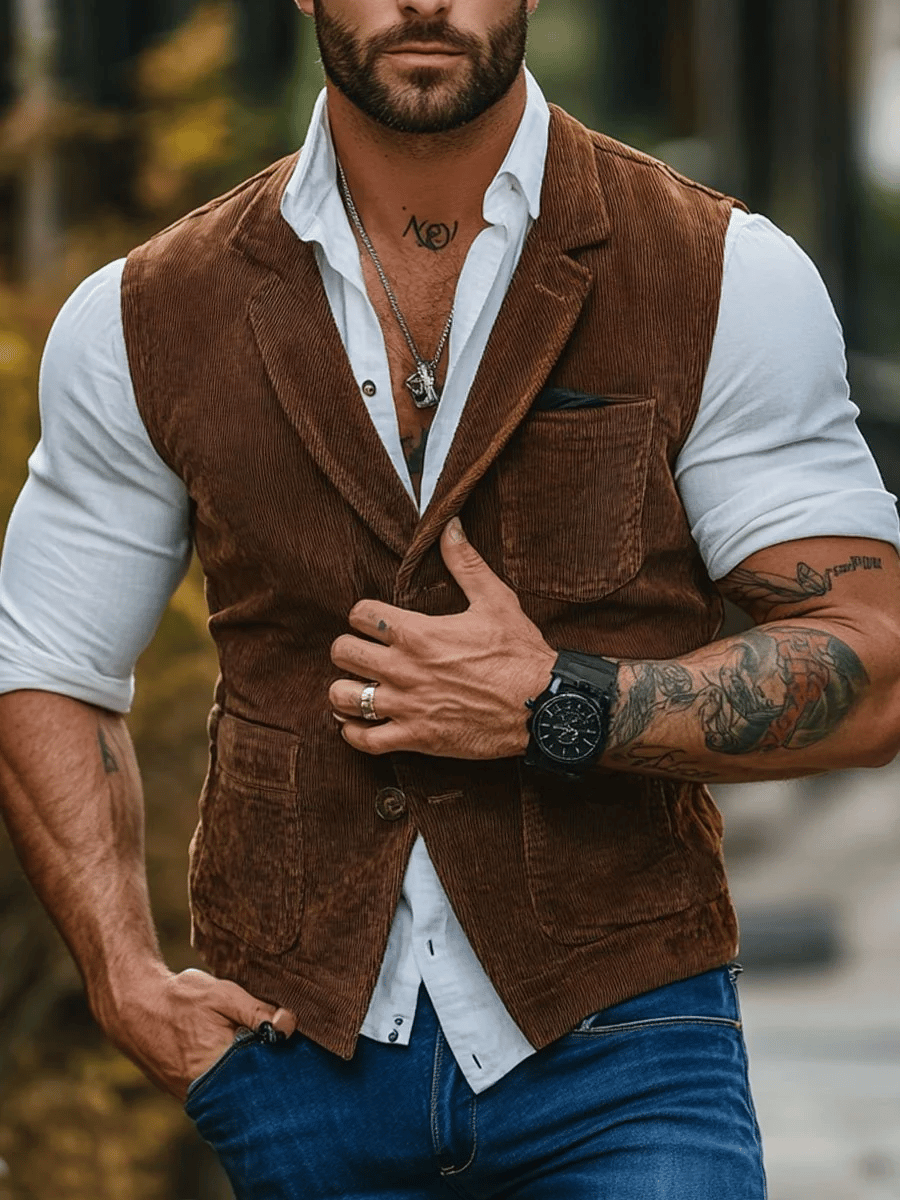 Outdoor Lapel Multi-Pocket Corduroy Vest