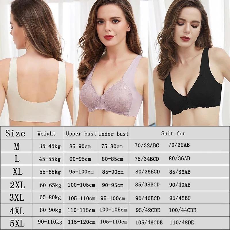 • Bra Style: Front Closure, Seamless, Wireless, Push Up, Lace