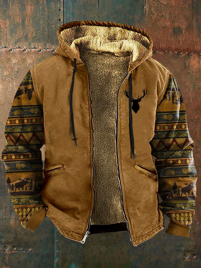 Retro Casual Forest Elk Print Velvet Men's Jacket