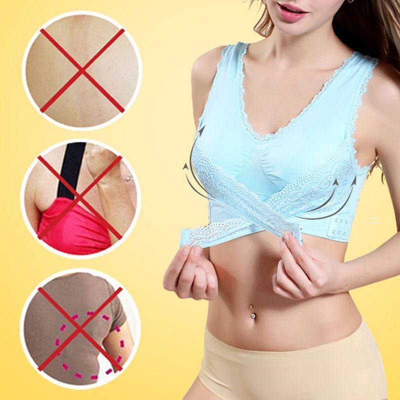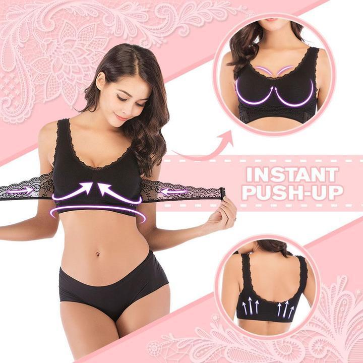• Adjustable crisscross floral lace strap for stabilizing & push-up effect