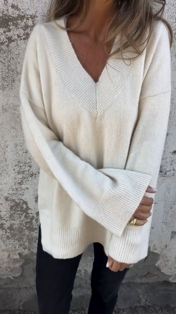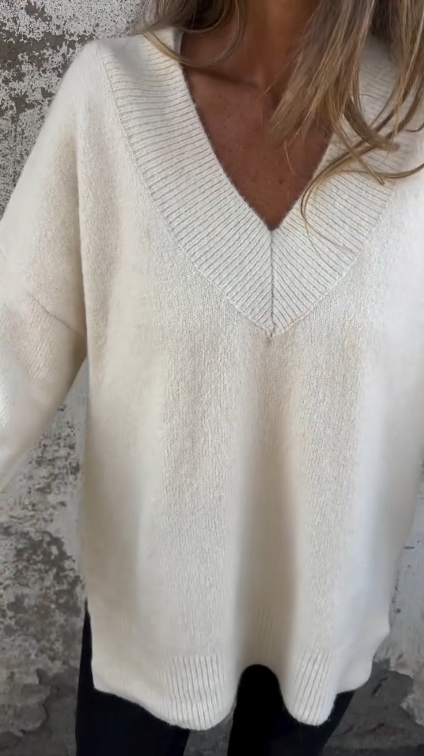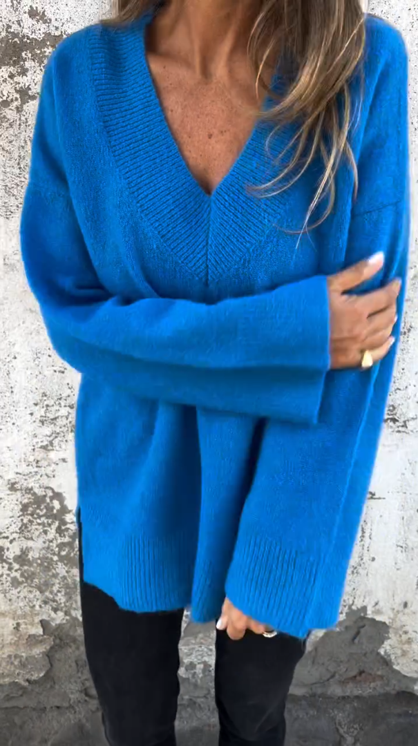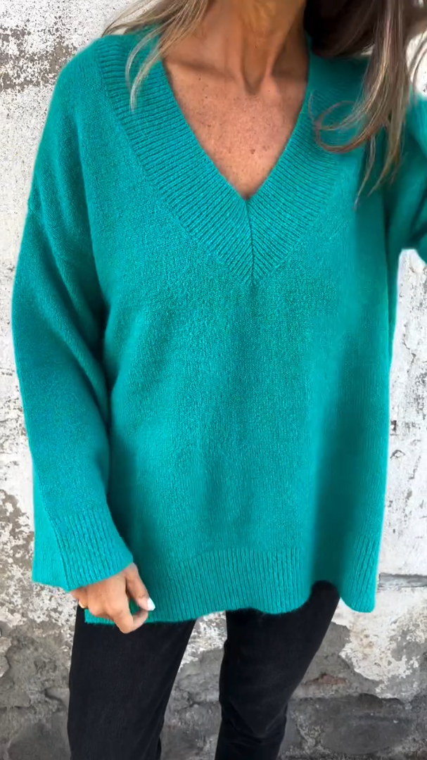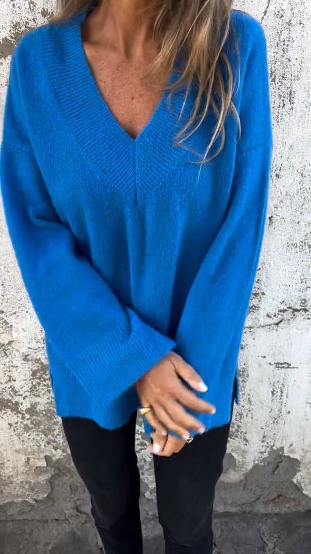 Solid Color V-neck Long Sleeves Thick Sweater