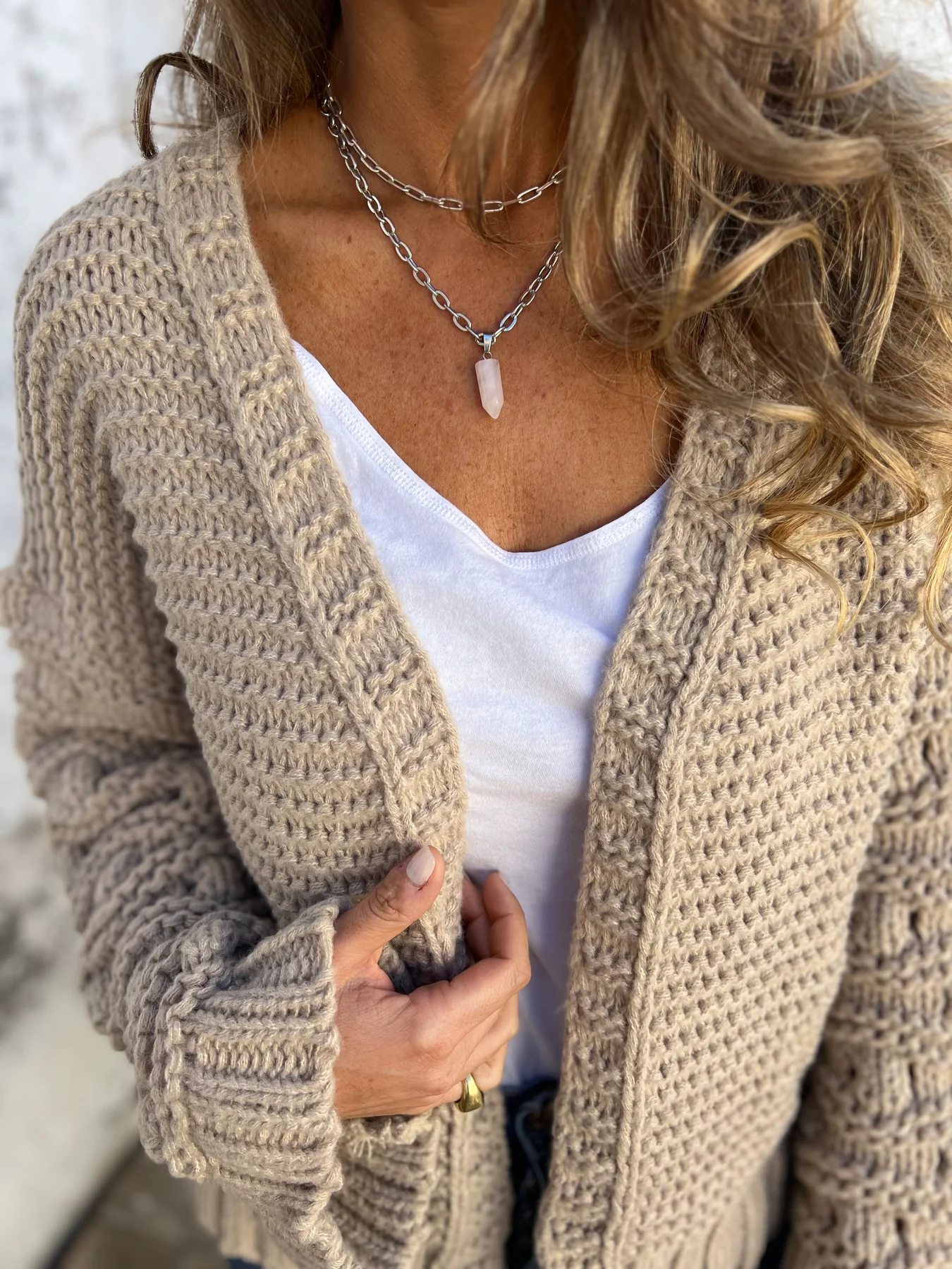 2025 New Fashion Knit Solid Color V-neck Long-sleeved Cardigan